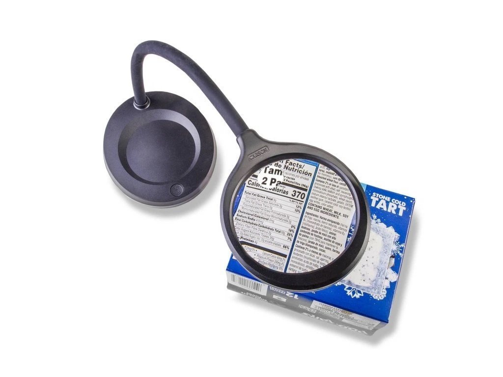 Osvětlená lupa je napájena AC síťovým adaptérem (USB-C) nebo 3 AA bateriemi (nejsou součástí balení). Uvedené zvětšení je garantováno výrobcem po celé ploše čočky.