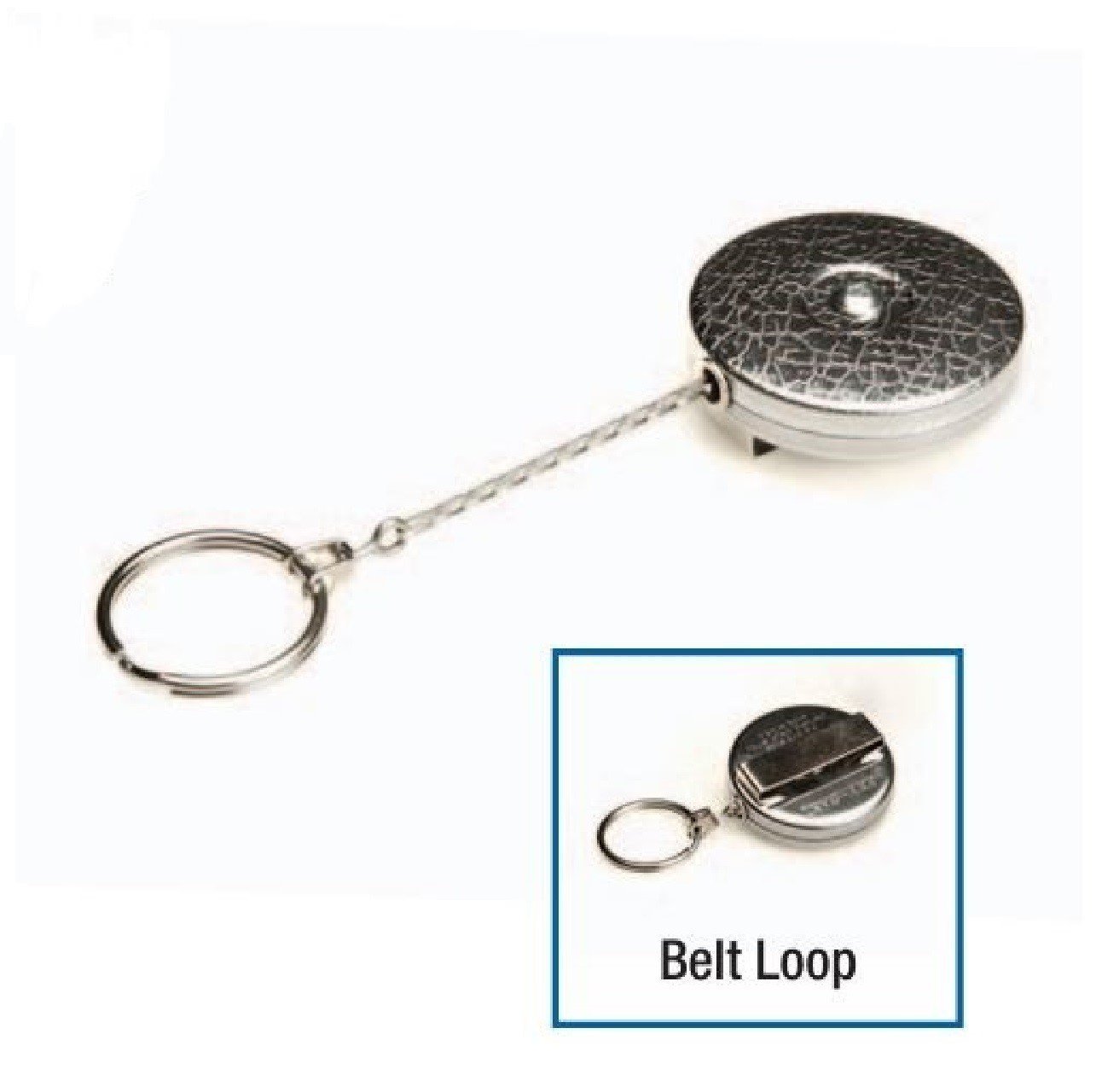 Model se sponou na opasek. Přední část z chromu s texturou. Retraktor určený pro nejnáročnější podmínky a použití. Díky kovovému řetízku máte jistotu pevného upevnění.