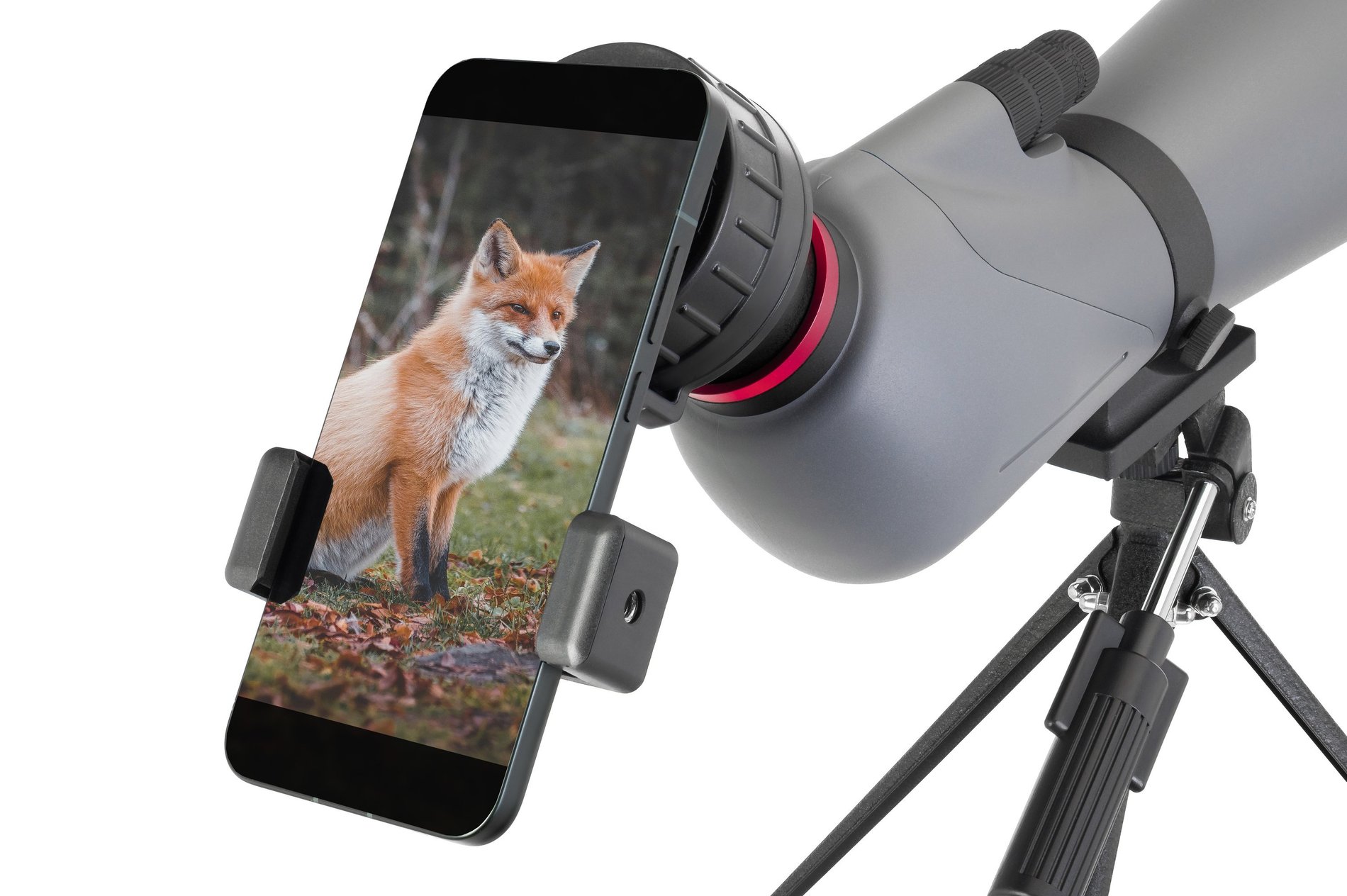 Podělte se o své objevy se svými blízkými! Přiložený adaptér pro smartphony umožňuje snadno pořizovat fotografie a videa přímo přes okulár. Pozorovací dalekohled je vybaven standardním 1/4" závitem pro montáž na stativ a je kompatibilní s jakýmkoli stativem, který splňuje požadavky na nosnost. Sada obsahuje: pozorovací dalekohled, kovový stolní stativ, adaptér pro smartphone, pouzdro na přenášení, krytky objektivu a okuláru a hadřík na čištění optiky.