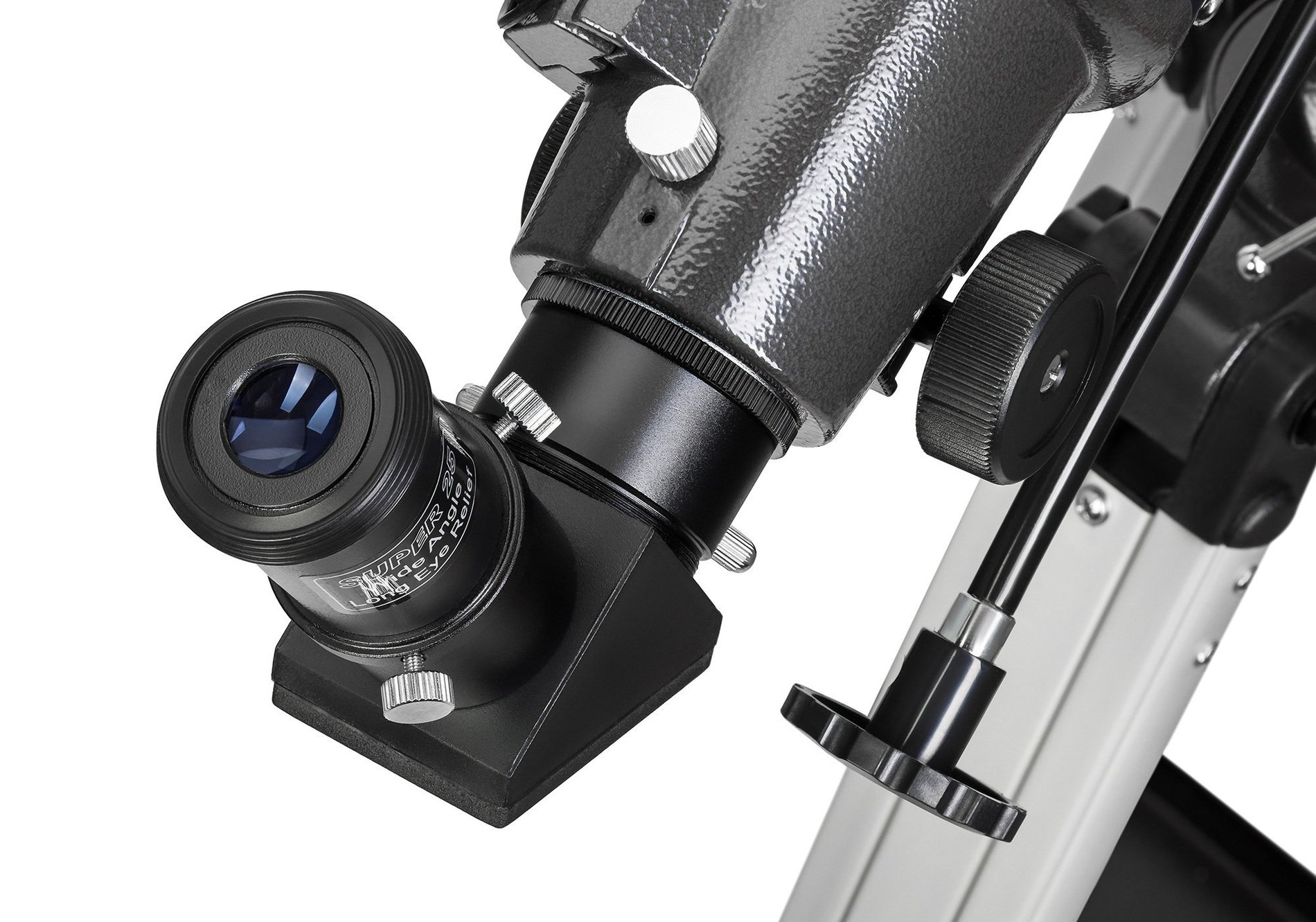 Vícenásobná antireflexní vrstva na všech optických prvcích poskytuje jasný obraz a zároveň udržuje pod kontrolou chromatickou aberaci, což znamená, že jemné detaily jsou lépe rozeznatelné. Dva okuláry, 10 mm a 25 mm, umožňují přepínat mezi různými zvětšeními podle toho, co právě pozorujete. Diagonální zrcátko umožňuje pohodlnější pozorování objektů vysoko na obloze.