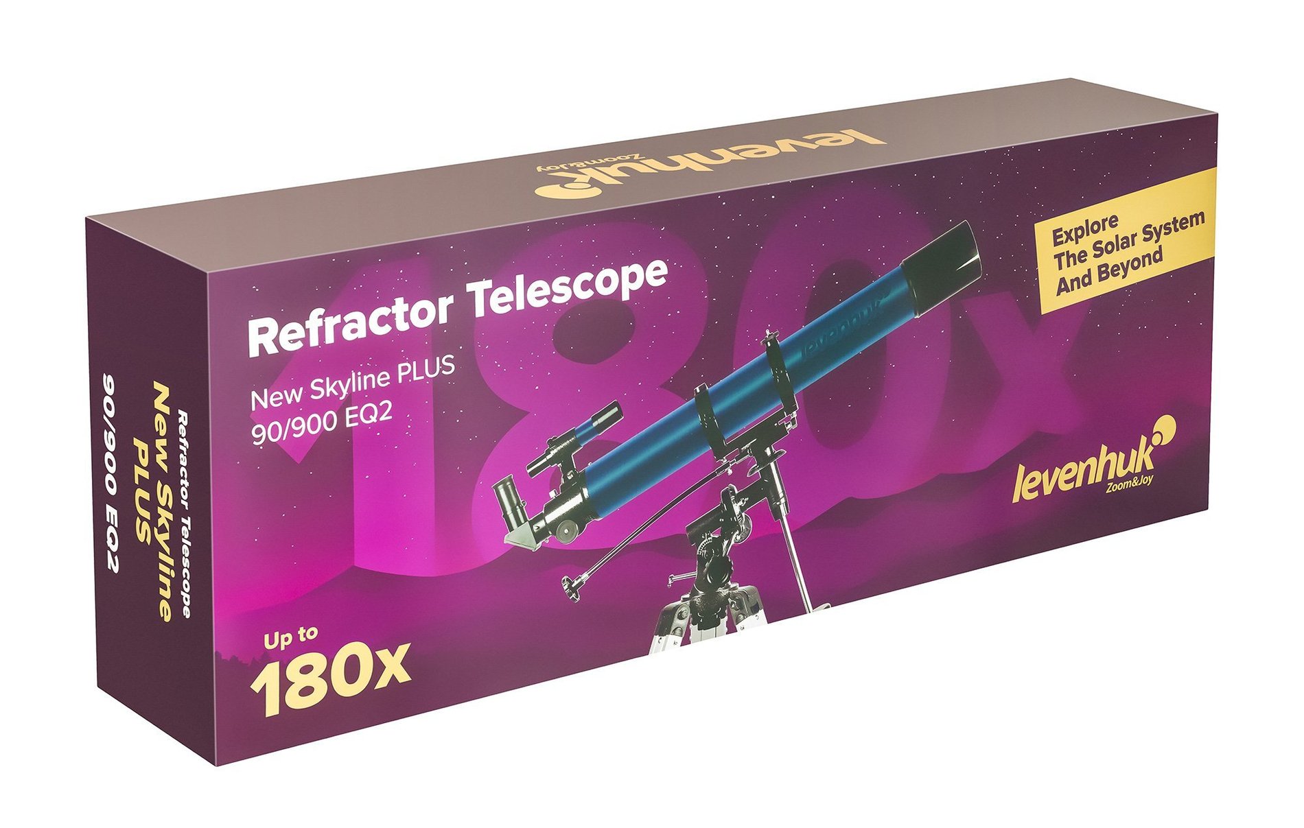 Levenhuk New Skyline PLUS 90/900 EQ2 je achromatický refraktor s dlouhou ohniskovou vzdáleností a paralaktickou montáží. Je zkonstruován pro zkoumání našeho vesmírného sousedství i hlubokého vesmíru za jeho hranicemi.