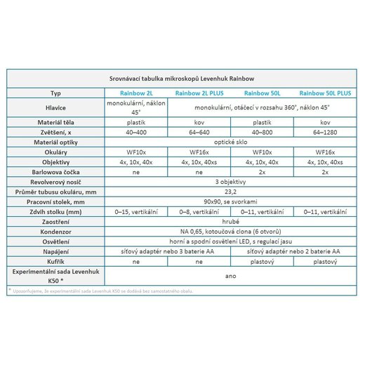 Experimentální sada Levenhuk K50 obsahuje: